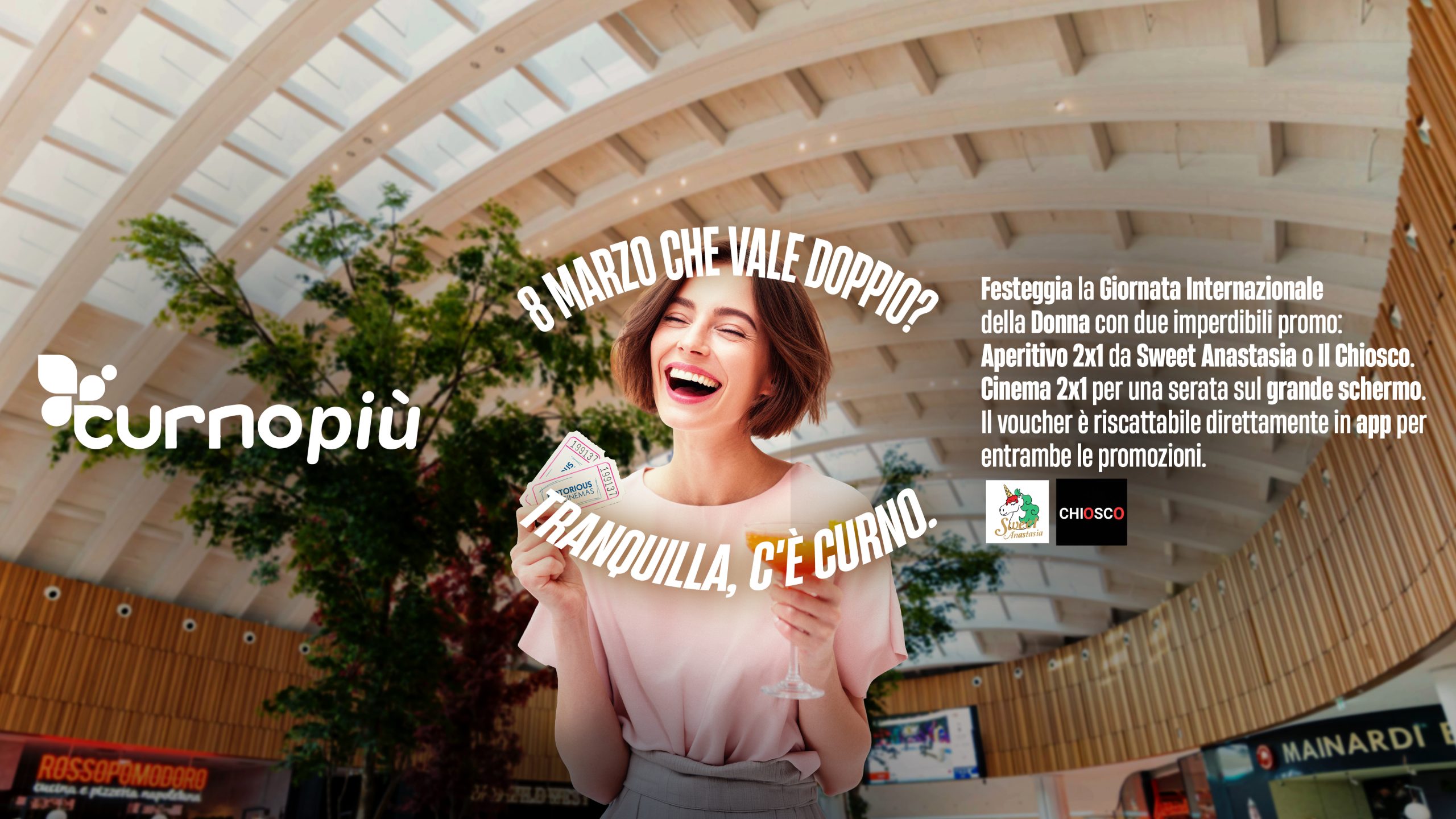 Ti aspettiamo a Curno per rendere speciale il tuo 8 marzo tra sorrisi, cinema e un buon brindisi.